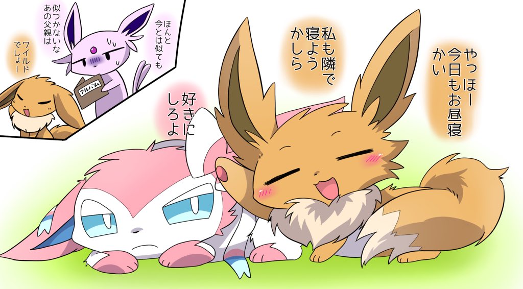 尻尾あむあむ #エーフィ #ブラッキー #エフィブラ