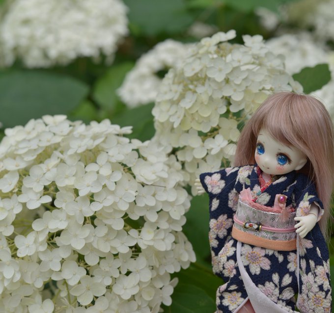よき紫陽花スポットを見つけた⸜🙌🏻⸝ #お華着 #あまむす #うちのこかわいい #おはドル