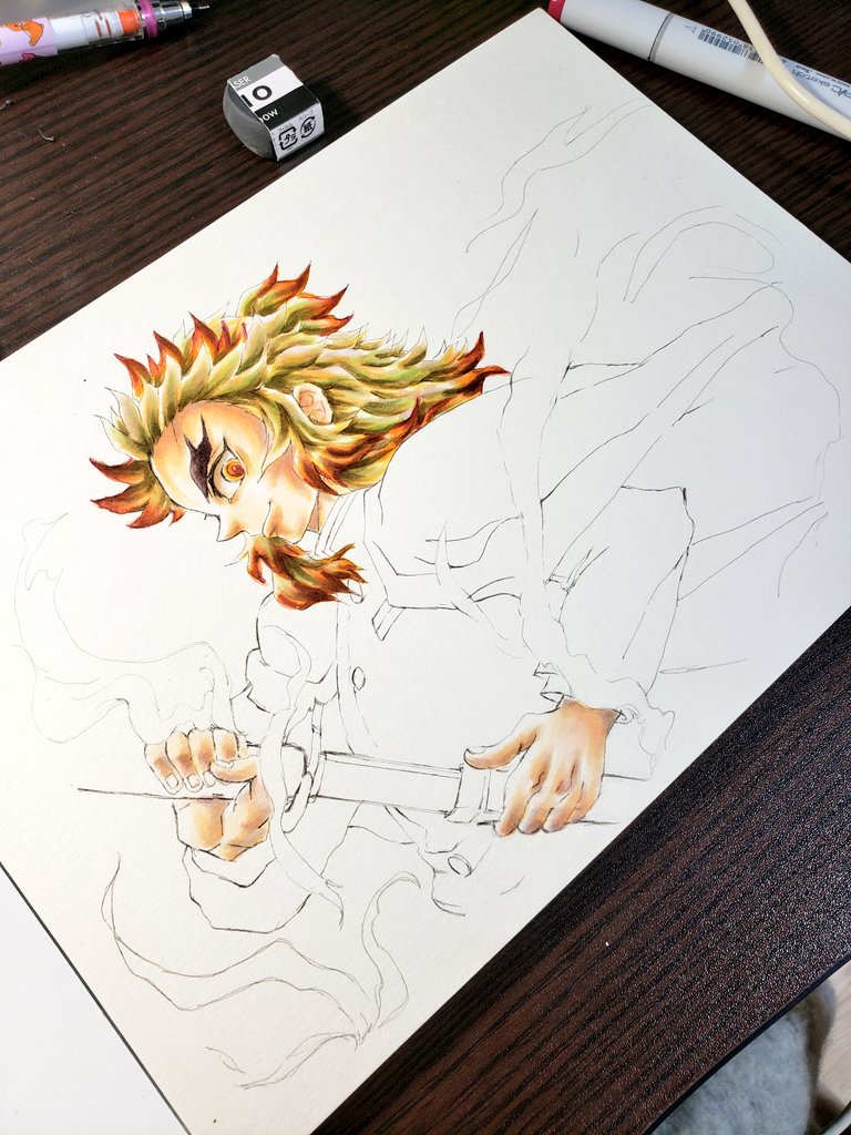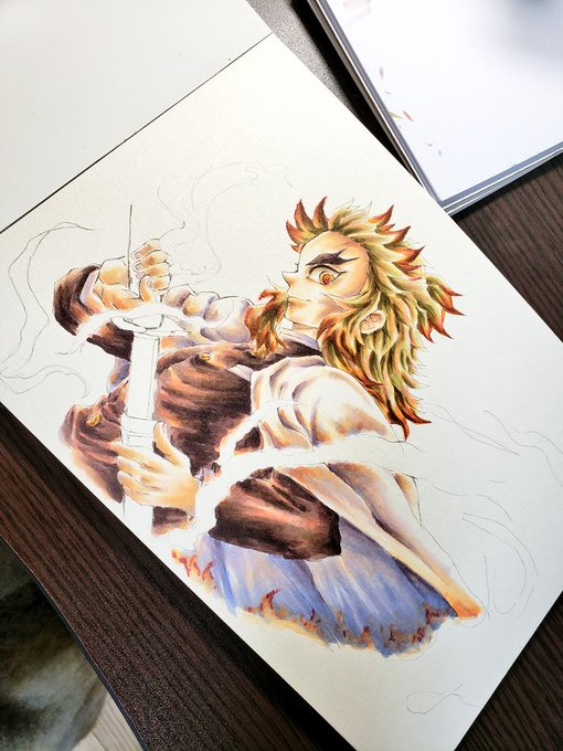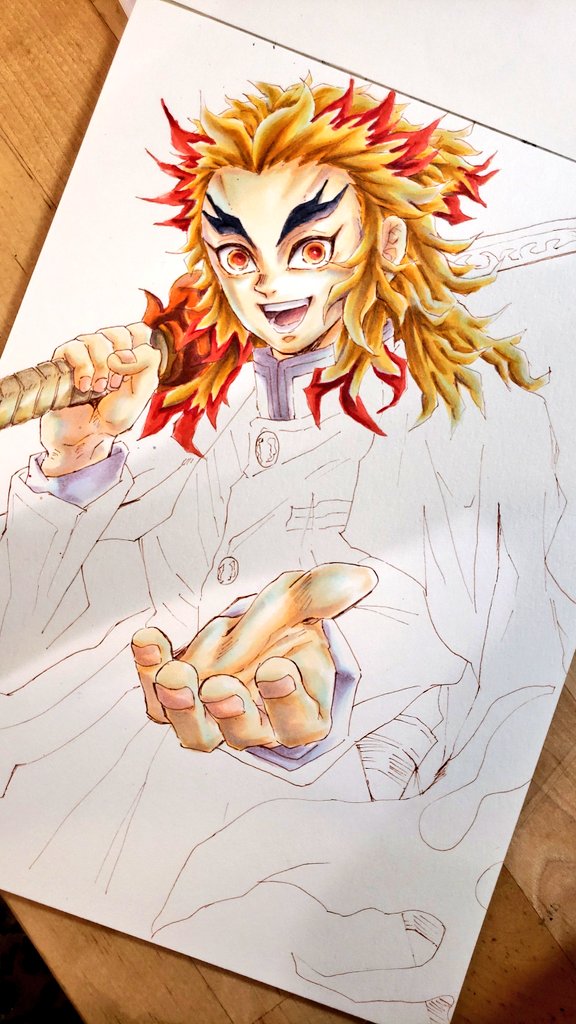 だいーぶすすまったよ、、、😭 絵が描けるときは描く気分ならなくて時間なくて描けない時に衝動的に描きたくなるっていう変なループ♻️ #煉獄杏寿郎 #鬼滅の刃イラスト #鬼滅の刃ファンアート #煉獄さん #鬼滅の刃無限列車編 #コピックイラスト