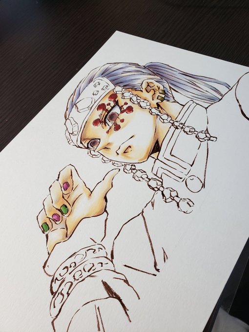 なんだか納得いかずの色味なのだけど、精一杯だぁ😢喜んでくれるといーな にじんで色がついちゃったとこあるし、、雑さ目立つなぁ😅 紙で全然出る色違う #竈門禰󠄀豆子 #竈門禰󠄀豆子イラスト #鬼滅の刃ファンアート #鬼滅の刃イラスト #鬼滅の刃 #コピックイラスト #damonslayer #kamadonezuko