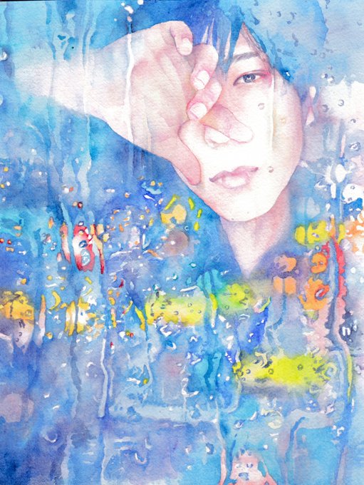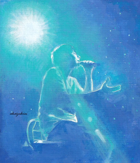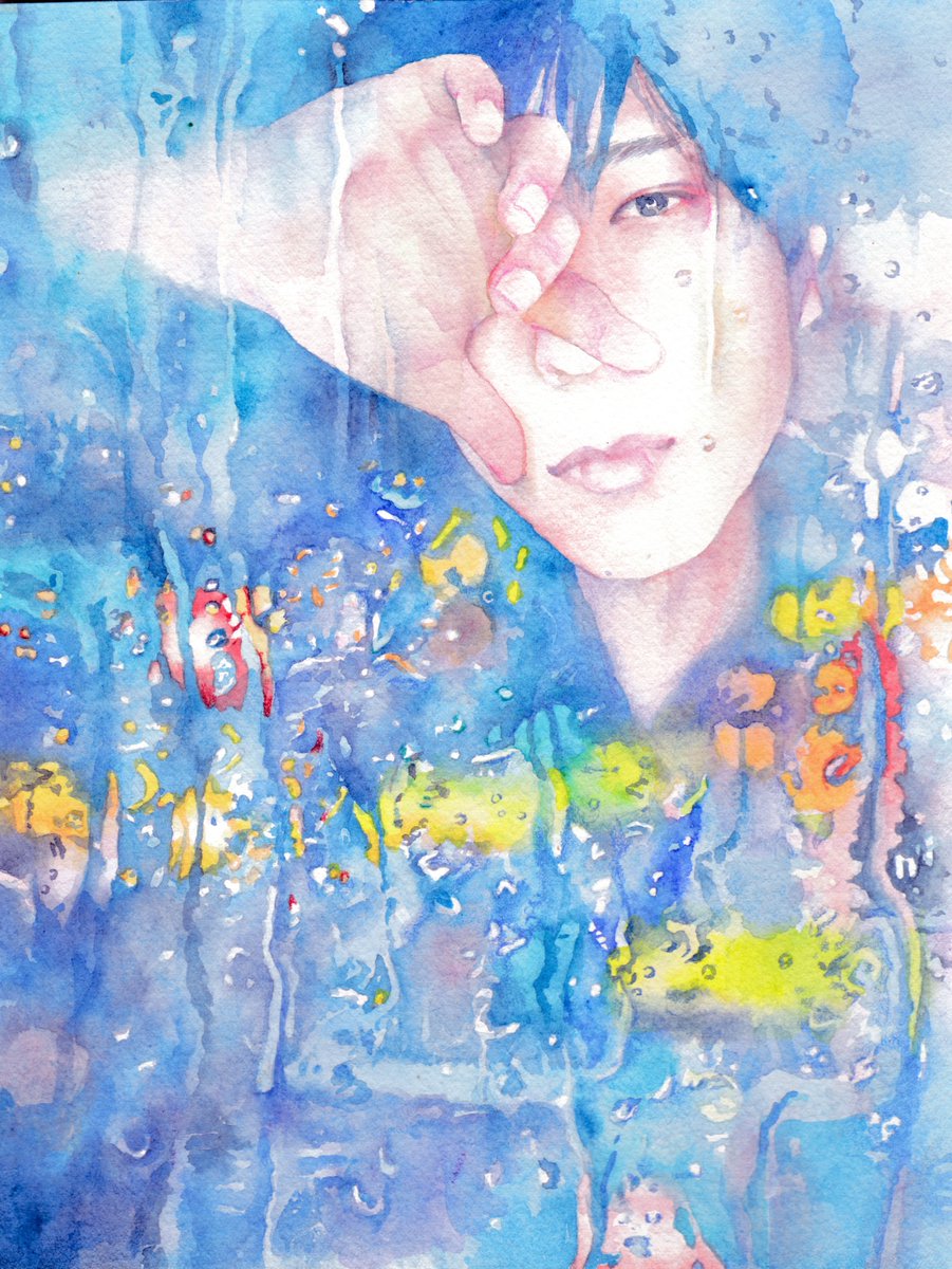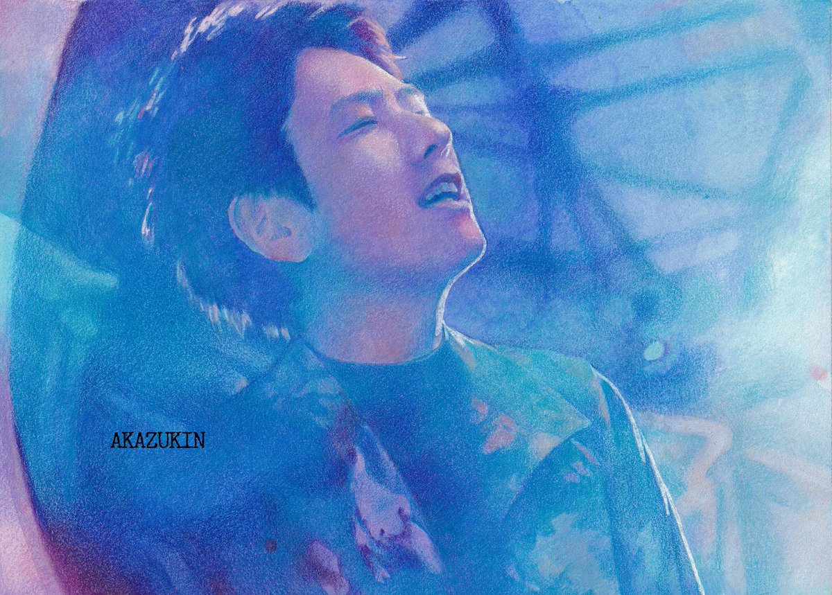 「HONEY BEAT」МVからの2枚目。 青い光の中のニノちゃんが美しい✨ アルシュ紙・水彩・色鉛筆