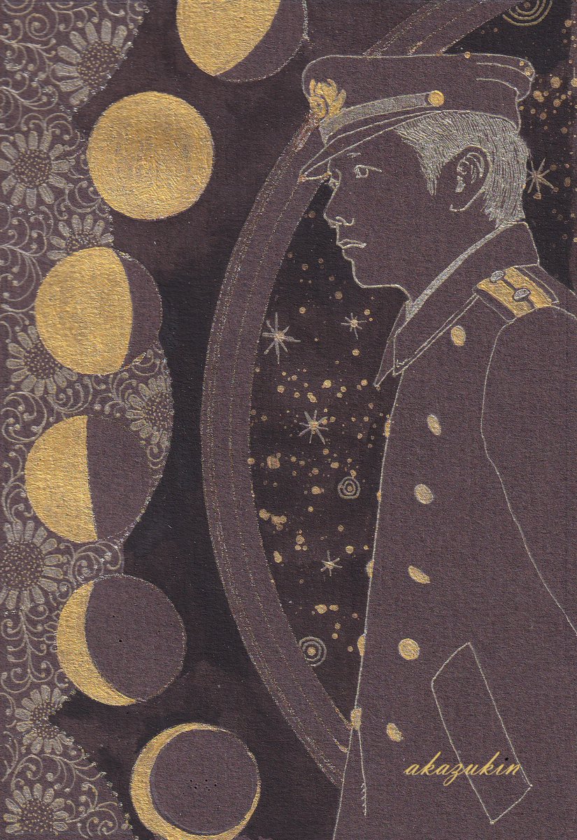 濃い色のアングル紙に、 キラキラボールペンなどで描きました。 一枚目は速水少佐(のつもり)。 アングル紙・ゲルボールペン・水性絵具