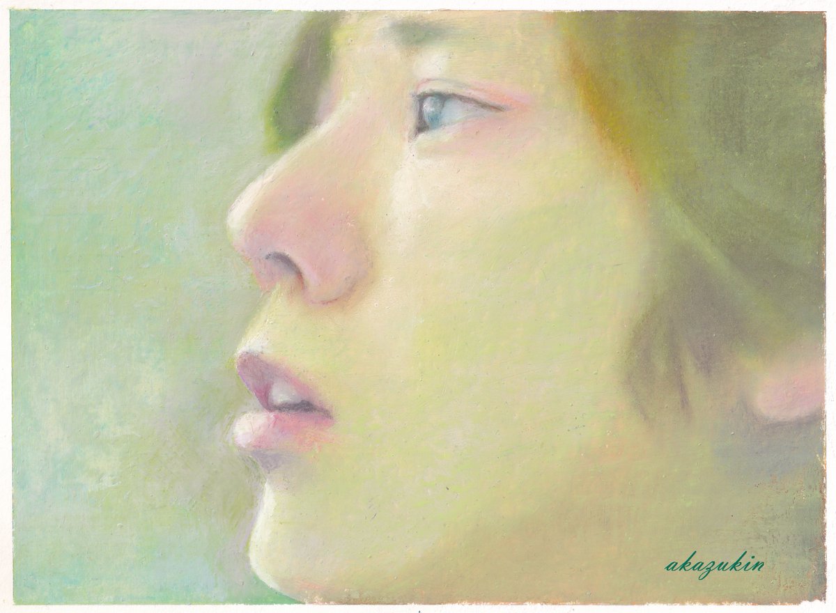 8 110 いつのニノちゃんだかわからずに描きましたが、 auのCMだと、みんなに教えてもらいました。 透明感と儚げな表情がスキ。 イラストボードにオイルパステル 23/03/20 18:11