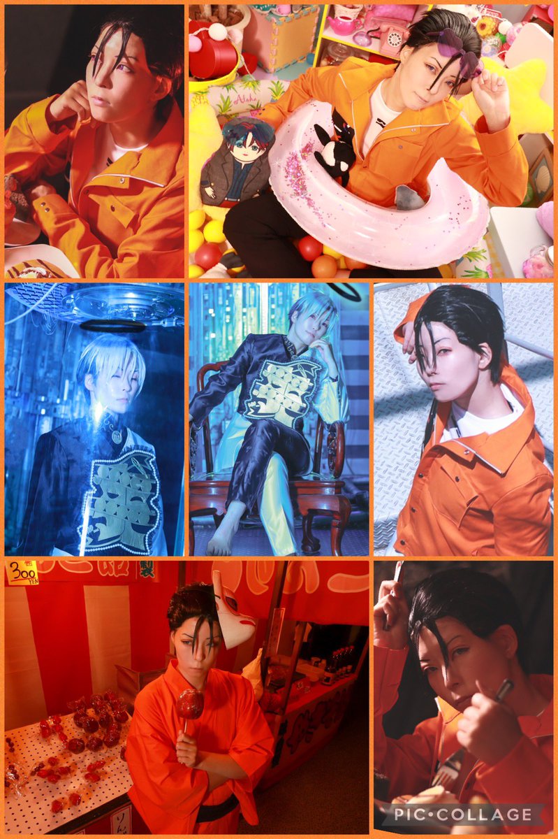 ・KKのタバコは丸めたレシートに朱肉つけたやつ🚬 ・依央利くんはハンガーだけフリー素材(あとは全部むっちゃんと私で揃えた) ・酒呑ちゃんの盃の紙は原稿用紙(むっちゃんに買ってきてもらった) ・銃兎のチェーンを忘れて別の日の自分の写真から切り抜いて合成 #コスプレイヤー代用選手権