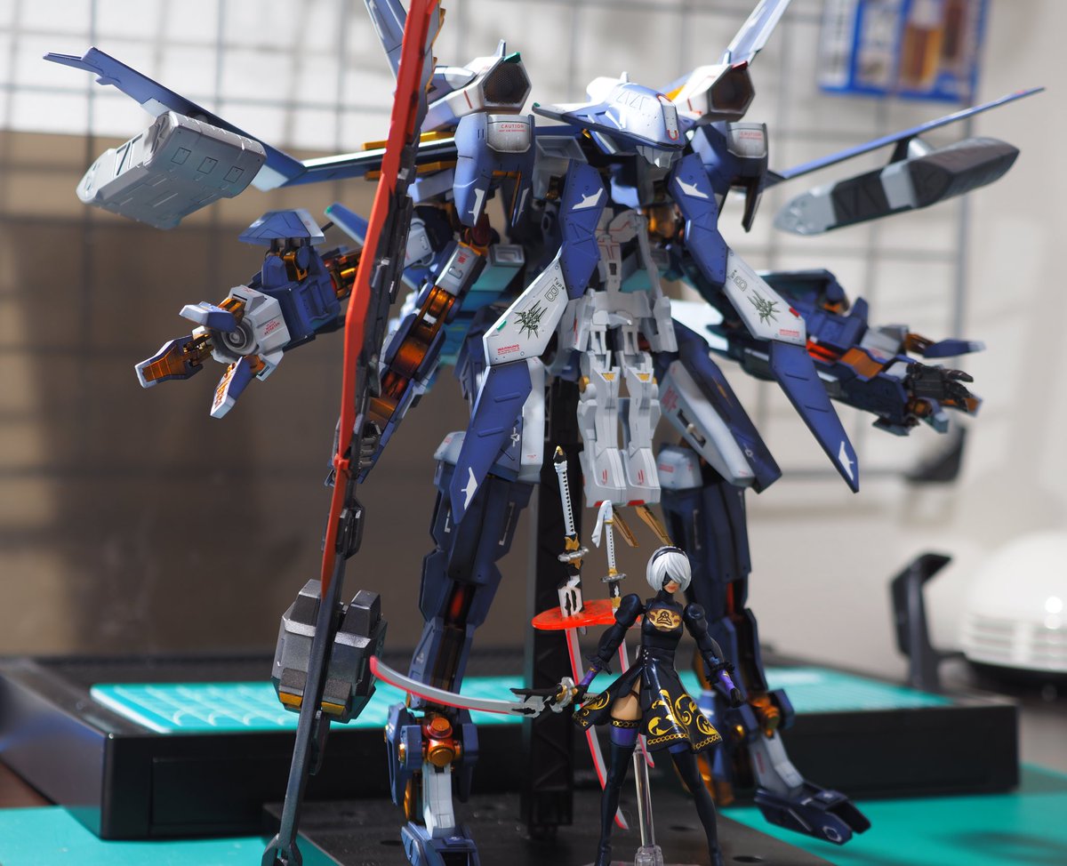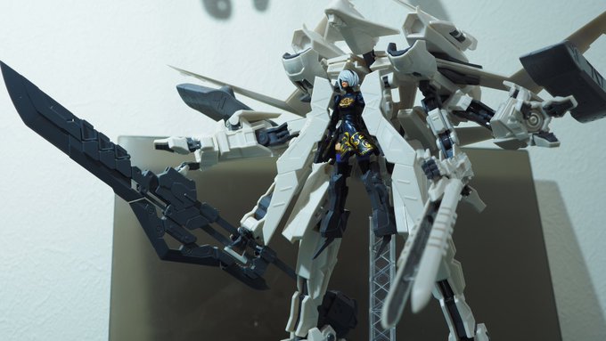 #今月作ったプラモ晒そうぜ 完成✖️1 ニーアオートマタの飛行ユニット 素組✖️5 弓兵、忍者、轟雷、パトなっちん 皇巫スサノヲ蒼炎 寒すぎて塗装は現在お休み中なので素組が多いです( ´∀`)