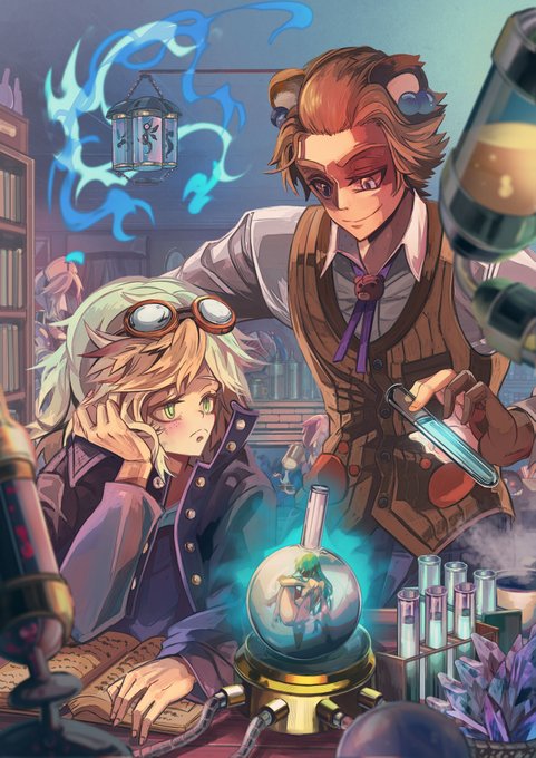 素敵なキャラクター達を描かせて頂きましたー 「怪しい実験」とのことで、お部屋のオブジェクトや実験器具を沢山描けて楽しかった! #skeb twitter.com/ake8901/status…