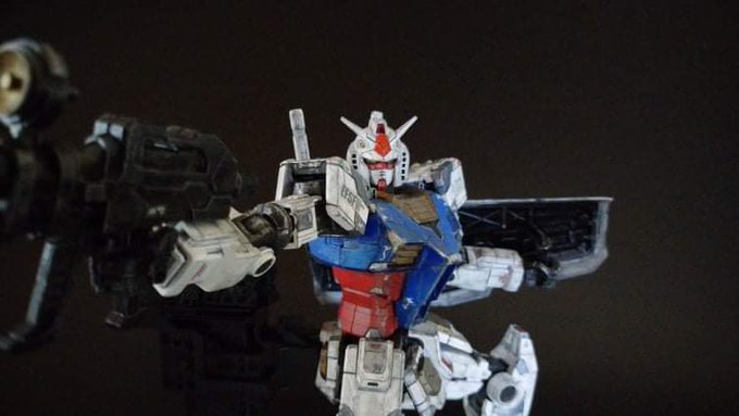 今日の友人に撮ってもらった、うちの玩具写真シリーズ。 横浜ガンダムはこういうポーズをとらせる映えるなー。 汚し過ぎたウェザリングが目立ってなくて良かった。 #ガンプラ好きと繋がりたい #ガンプラの画像貼るとRTされると聞いて #ガンプラ
