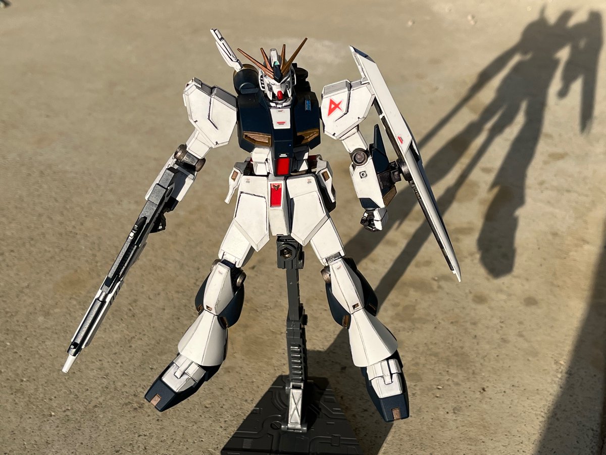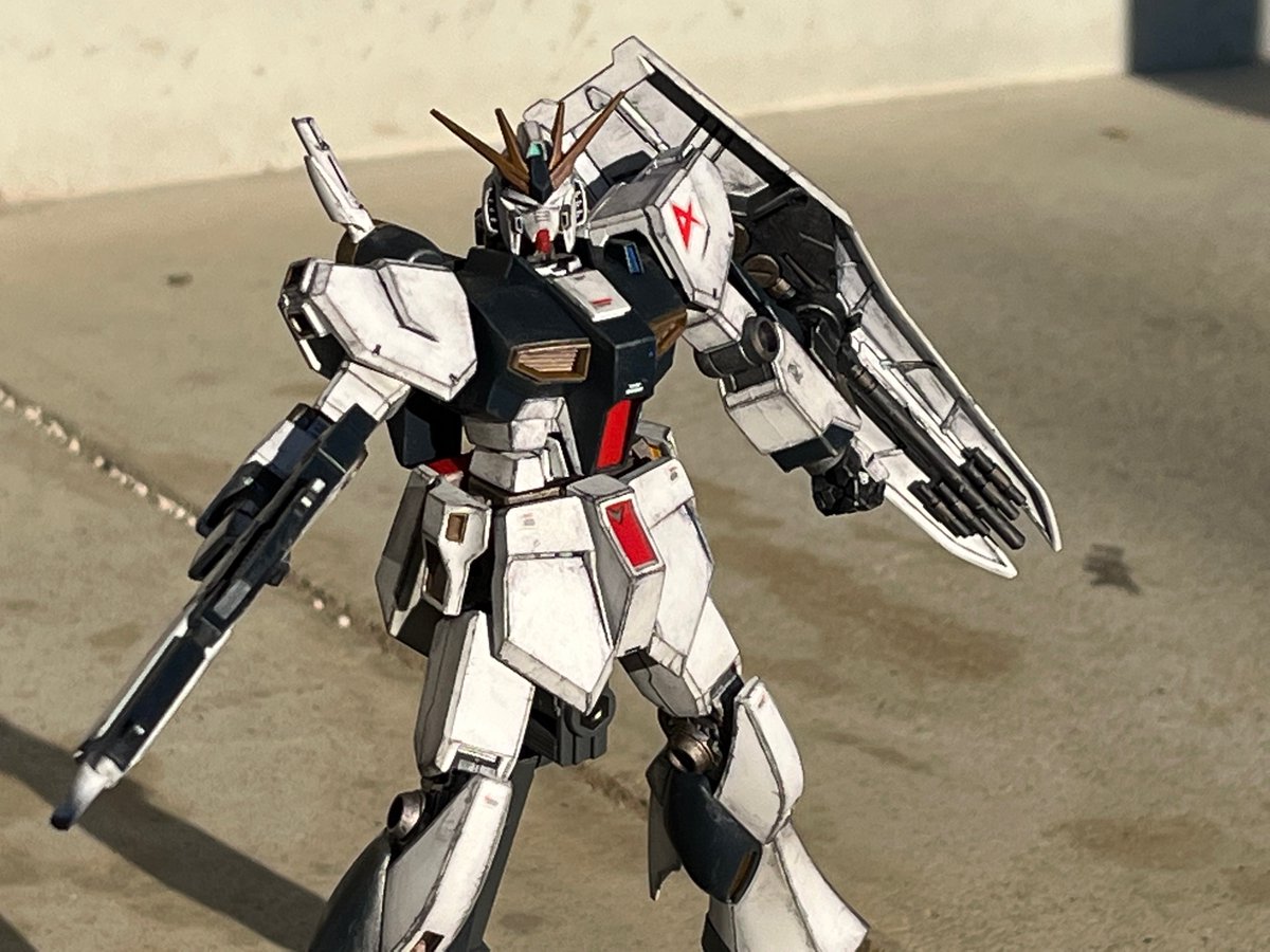 今回は宇宙用なのでしないでいようかと思っていたけど、結局、エントリーグレードνガンダム、軽くウェザリングしたのであった。ドライブラシも練習してみた。 #ガンプラ #ガンプラ好きな人と繋がりたい #ガンプラの画像貼るとRTされると聞いて #ガンプラ汚し展覧会