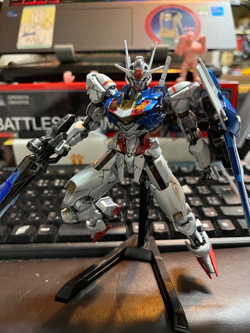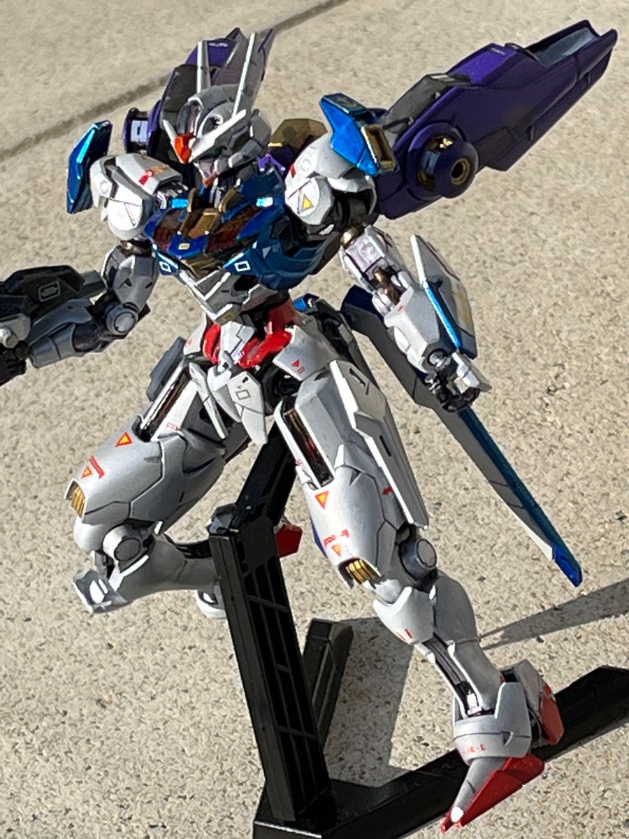 そういや、エアリアルのフライトユニットも塗ったんよ(スプレー)。いい色なくて紫になったけど。デカールも貼ろうかなぁ。 #ガンプラ #ガンプラ好きとつながりたい #水星の魔女 #ガンプラの画像貼るとRTされると聞いて
