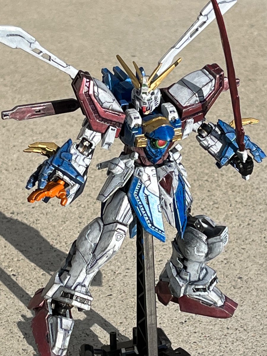 Gフレームゴッドガンダム墨入れ完了。ディテールは素晴らしいが、色々やってたら可動があまりできなくなってしまったという本末転倒。 #gフレームfa #ゴッドガンダム #ガンプラの画像を貼るとRTされると聞いて #ガンプラ好きな人と繋がりたい