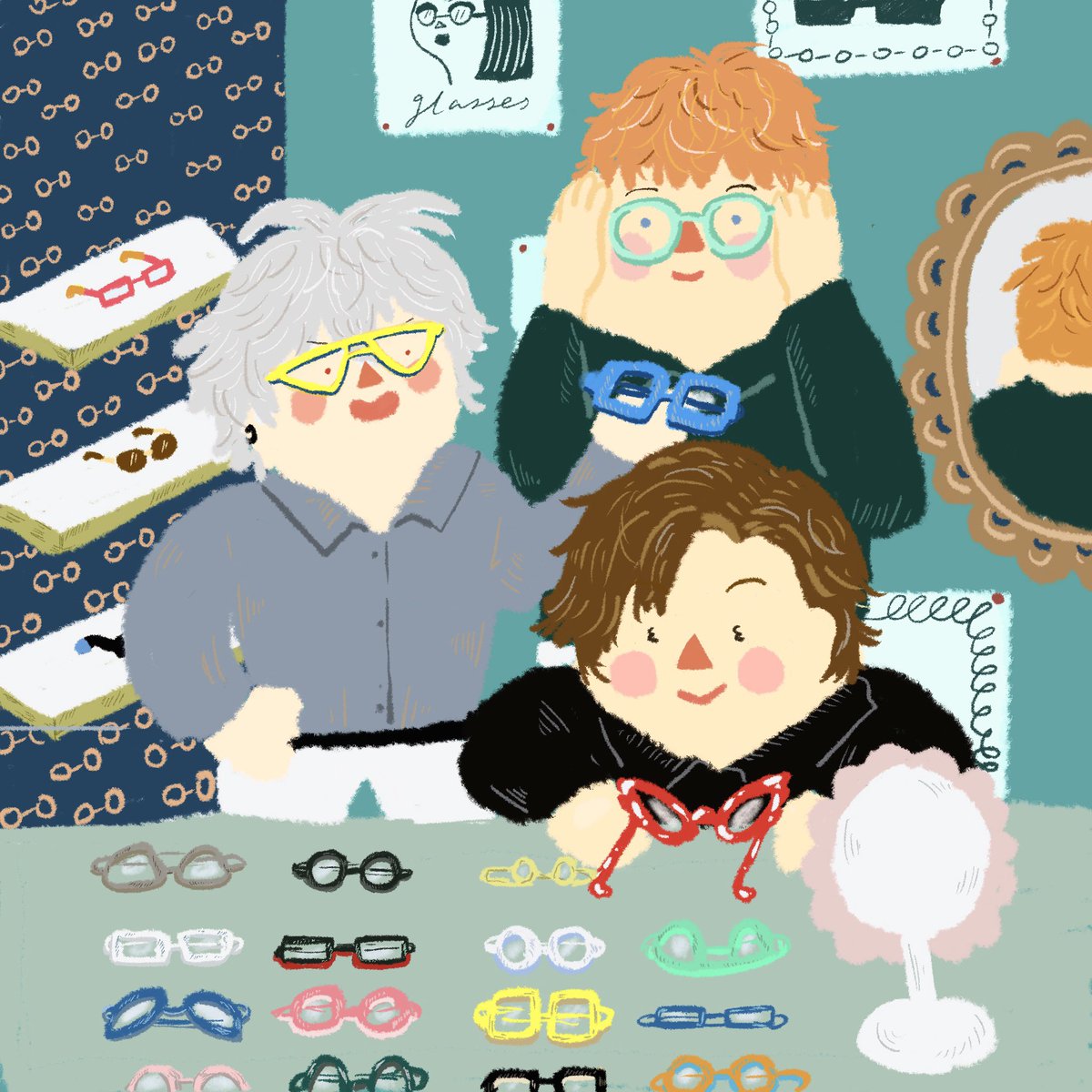 ヒプアニの変装シーンの準備で眼鏡屋さんでキャイキャイ選ぶまっとりがーくるー #ヒプノシスマイク #madtriggercrew #ヒプマイファンアート