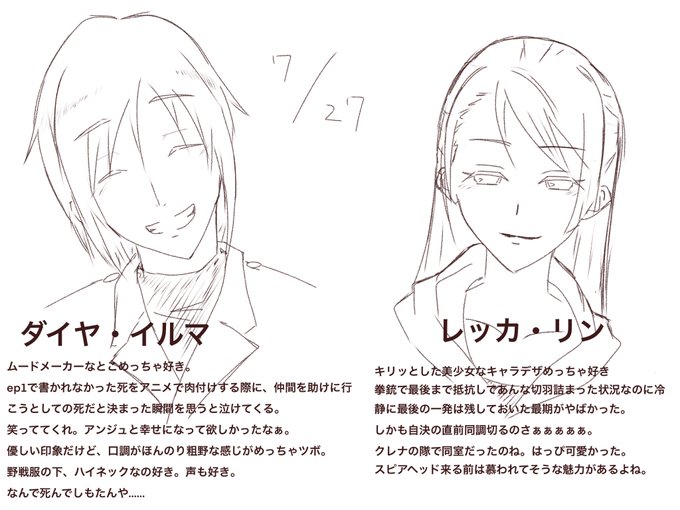 間に合った。落書きでごめんよ😭 ダイヤもレッカもめっちゃ好きー! アニメ見てた時は全員死ぬと思ってたから耐えられたけど、愛着湧いた今の方がアニメを視聴しなおすと辛い。 何で死んでもたんや…連邦でみんなでわちゃわちゃしててくれよぉ😭 どうか笑っててくれ😭