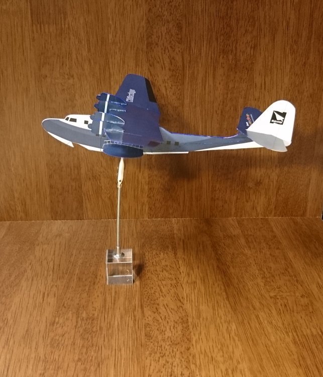 #ペーパークラフト:#飛行艇。ひさしぶりに #紙飛行機。少しづつですがきちんとした切り貼りができるようになって来ている気がします(自画自賛)。機種部分が厚口11枚分なのでずっしり重いです。人に当てないように飛ばさないと。#Canonペーパークラフト creativepark.canon/jp/contents/CN…