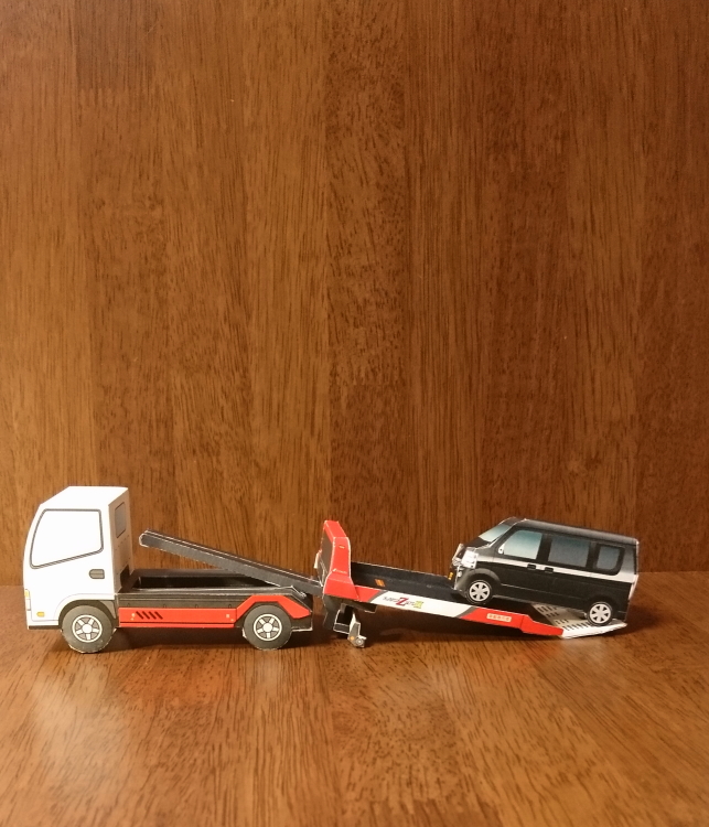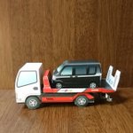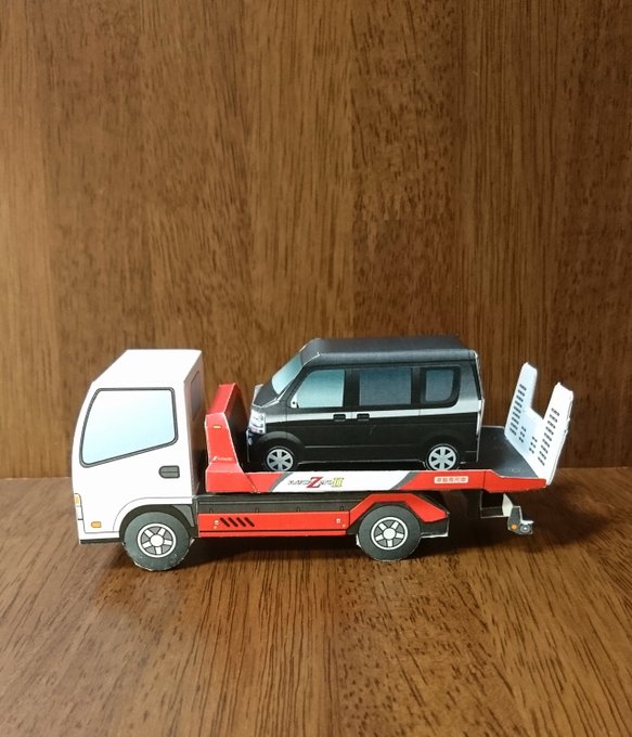 ペーパークラフト:キャリアカー(積載車)。 creativepark.canon/jp/contents/CN… 積まれている方は日産NV100の75%スケール。 nissan.co.jp/EVENT/PAPERCRA… #キャノンクリエイティブパーク #CANONペーパークラフト #ペーパークラフト #はたらく自動車 #極東開発工業 #日産 #NV100