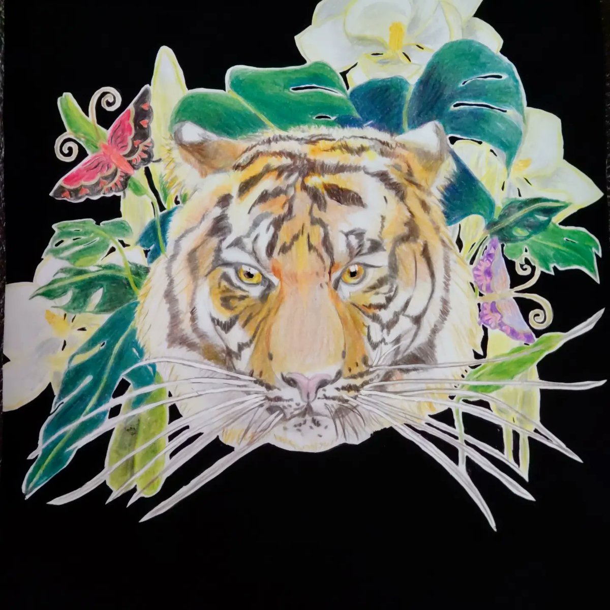 0 1 題「裏表」 色鉛筆メインで制作、華やかさと儚さを表現出来たらと思った作品です。 #色鉛筆画 #虎 22/05/19 10:22