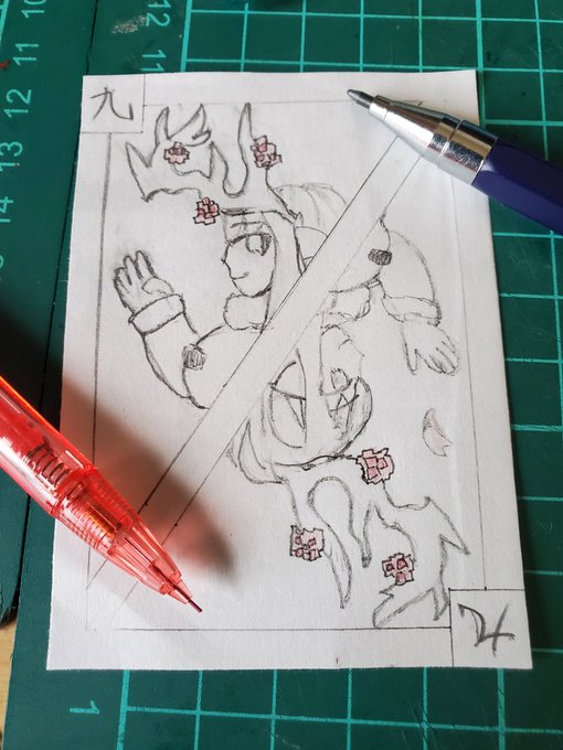 まと。さん(@Mato_tsuyoi)とこの9番目ちゃん描きました! 角の結晶が梅か、桜っぽくて好き… あと、トランプ状にしたと言うことはつまり…ね(ニヤリ コノアトオタンジョウビヨウノモカキマス…