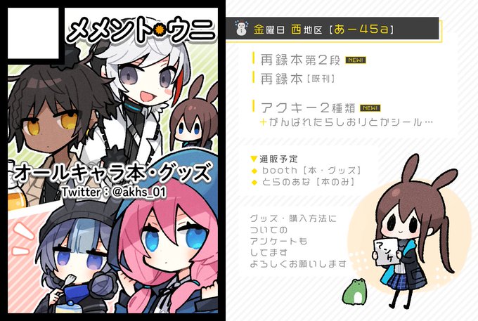 🍣▷日記(FANBOX)┊akhs-1.fanbox.cc 🍣▷pixiv┊pixiv.net/users/41525 🍣▷skeb┊skeb.jp/@akhs_01 └詳細:profcard.info/u/WpJsSE7D93bR… 🍣▷WEB再録本書店委託 ├🐯ecs.toranoana.jp/joshi/ec/item/… └booth:ccrr.booth.pm/items/3269175 ▽冬コミ予定⛄アンケ:forms.gle/oh8qPnC461wZHt…