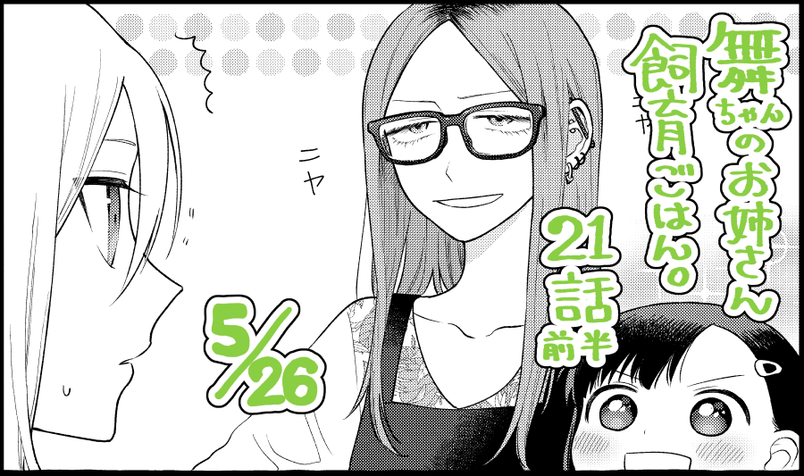 【更新】 ニコニコで21話前半が更新されました🐟 新米食べるときの定番おかず、ありますか? 舞ちゃんのお姉さん飼育ご飯。 21話 お母さんの秋ごはん[前半] / 秋津貴央 nico.ms/mg747855 #ニコニコ漫画