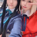 更衣室出てエマちゃんとお茶してます💕💕 つけまお揃い🫶🏻 #アコスタ道頓堀 #道頓堀コスプレ祭