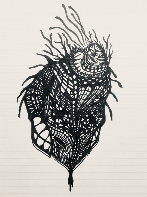 久しぶりに描きました #ペン画 #オリジナルアート #筆ペン #絵描きさんと繋がりたい #rkgk #私の絵柄が性癖に刺さる人に届いてほしい #ゼンタングルアート