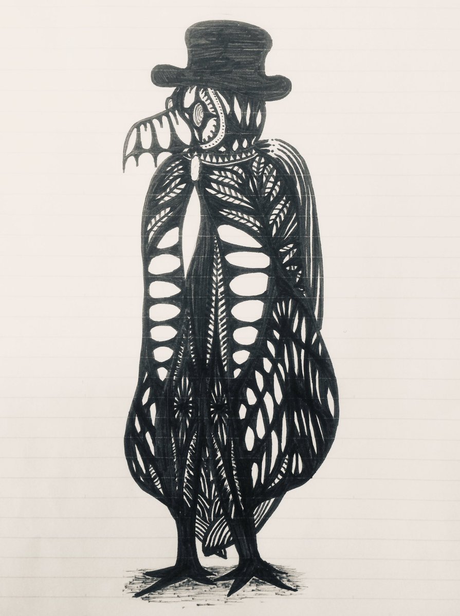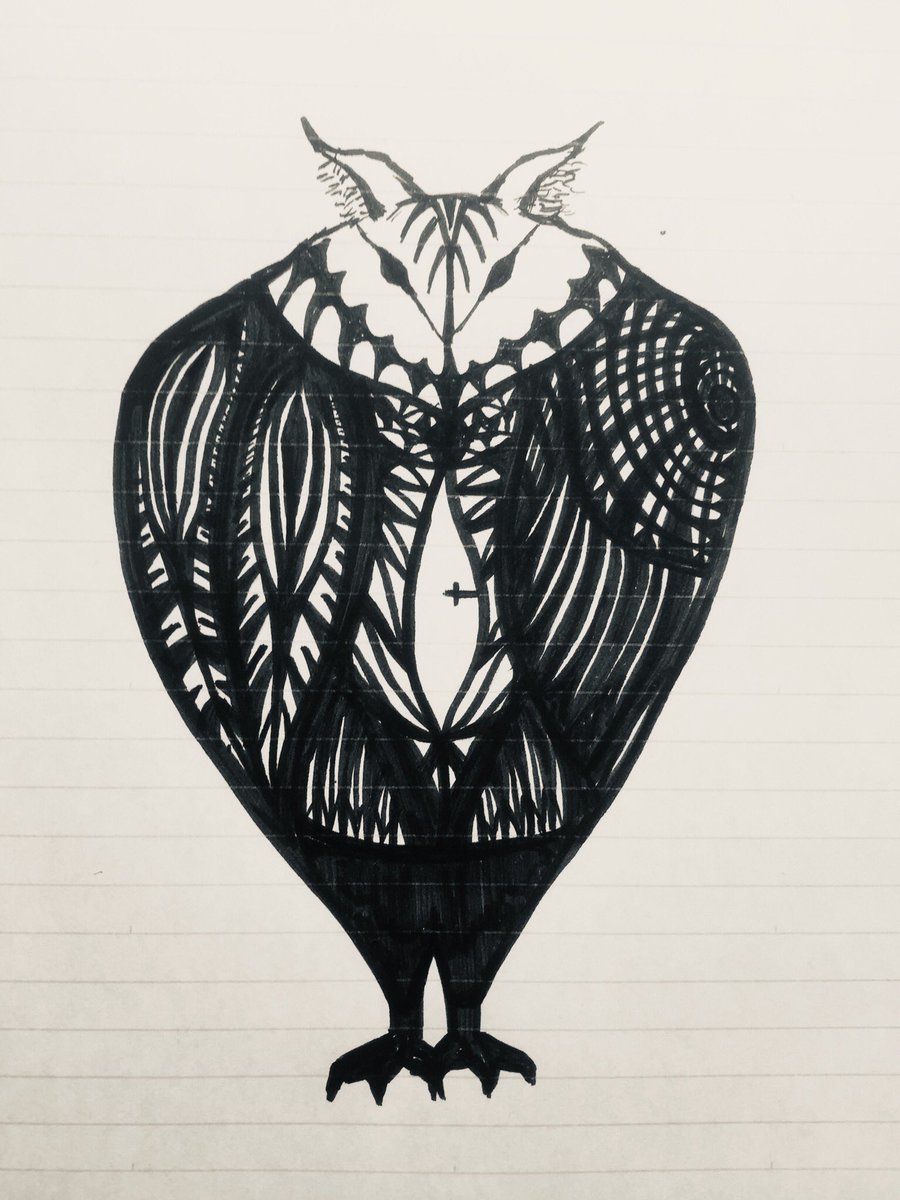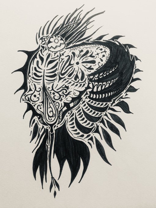 人外的な鳥さん #ペン画 #オリジナルアート #筆ペン #絵描きさんと繋がりたい #rkgk #私の絵柄が性癖に刺さる人に届いてほしい