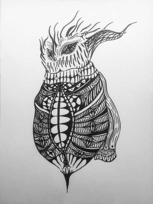 いつものとは趣向を変えた人外rkgk #ペン画 #オリジナルアート #筆ペン #絵描きさんと繋がりたい #rkgk #私の絵柄が性癖に刺さる人に届いてほしい