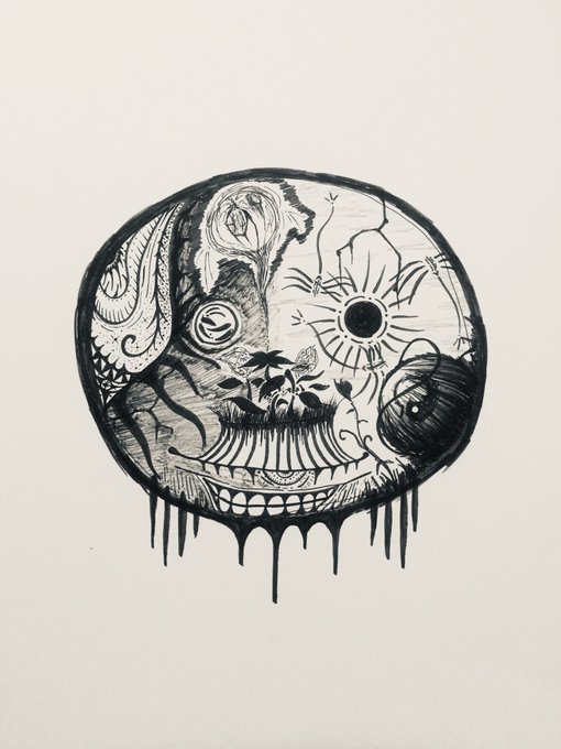 0 19 色反転タノスィ。 ごちゃごちゃシリーズ。 #ペン画 #オリジナルアート #筆ペン #絵描きさんと繋がりたい #rkgk #私の絵柄が性癖に刺さる人に届いてほしい 20/01/31 23:02