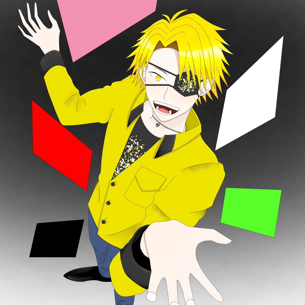 #からぴち #カラフルピーチ素材 眼帯下捏造注意! 「相手してやるからかかってこい」
