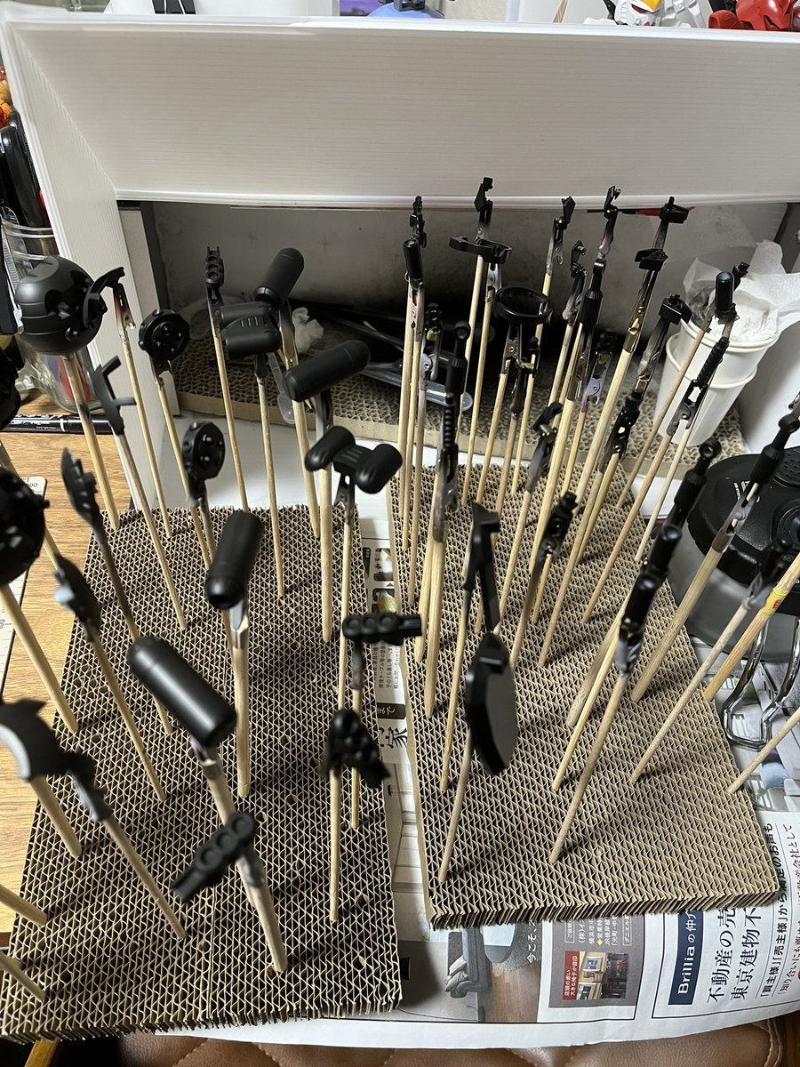 やっとまとまった時間が取れ、グフ組み立てました。このキットは塗装なしで、ウェザリング(初挑戦)してみようと思ってます。どこまで化けるか楽しみです。 子供見ながら切り出ししてたら、組み立て待ちが行列してます笑 #ガンプラ好きと繋がりたい #ガンプラの画像を貼るとRTされると聞いて