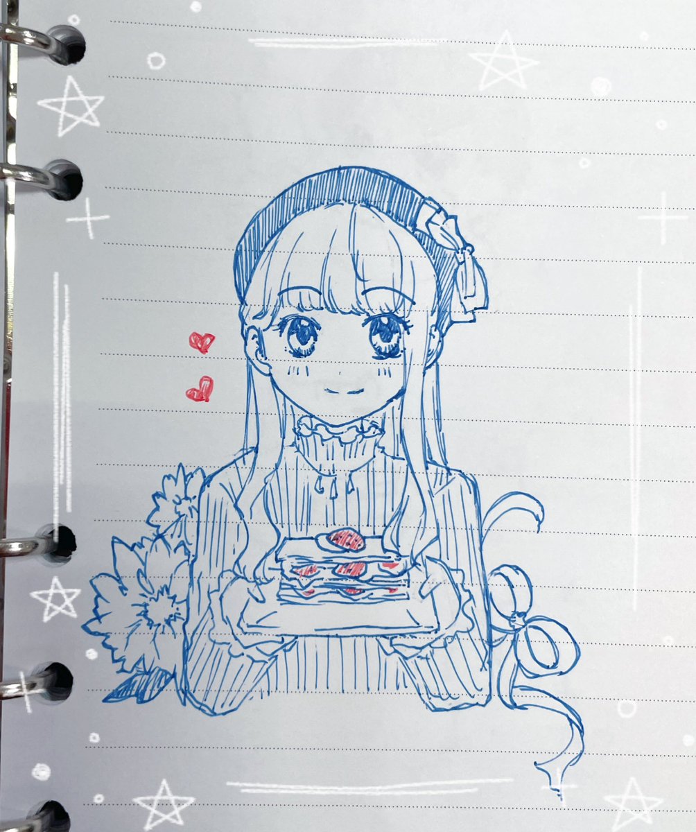 2023初落書き🍓 昨日のベレー帽しぃちゃんと弟くん作ったケーキ🍰 全部ミックスした! #椎名桜月 #しぃなもん #ナナニジ