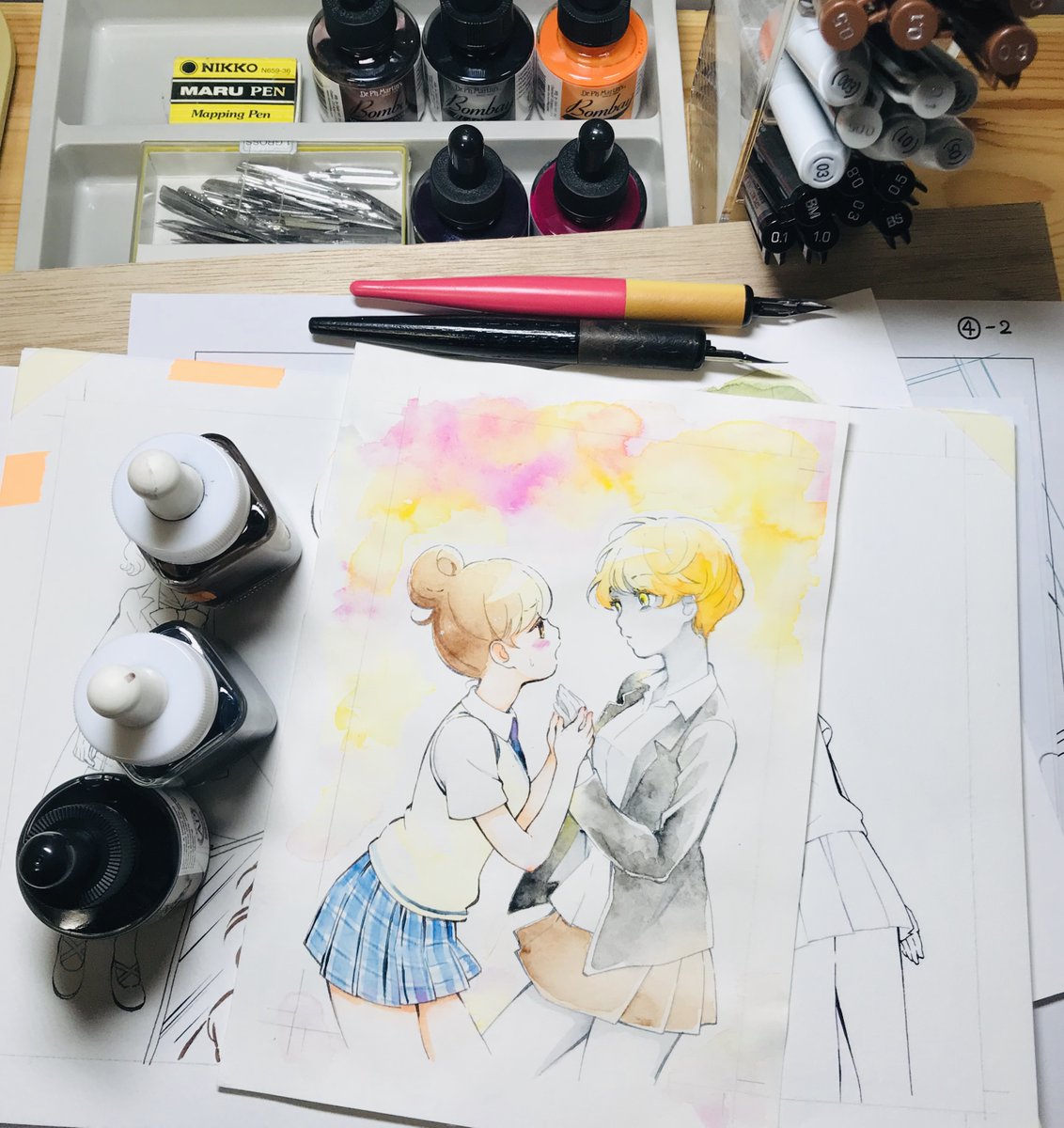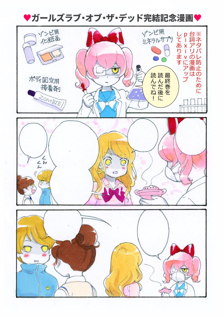 【告知】『ガールズラブ・オブ・ザ・デッド』完結記念漫画を描きました💕 ネタバレ防止のために画像は台詞が入ってません。本編の最終巻までお読みになった後にpixivを覗いてみてください😆 #pixiv pixiv.net/artworks/94690…