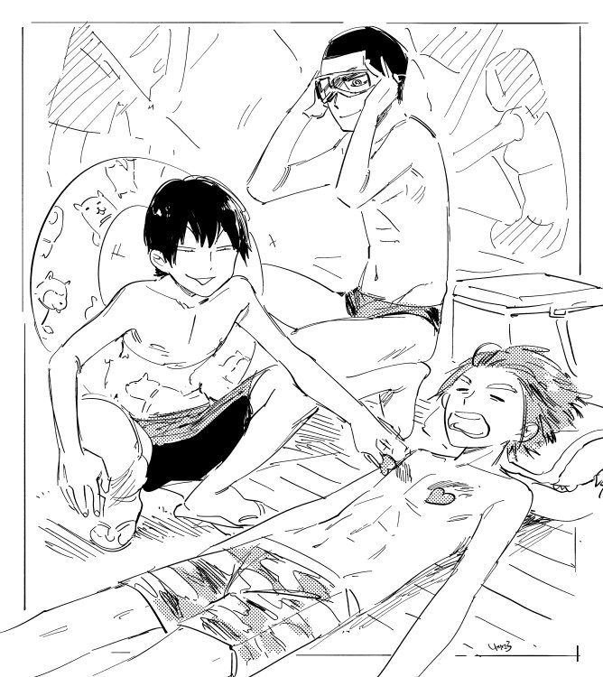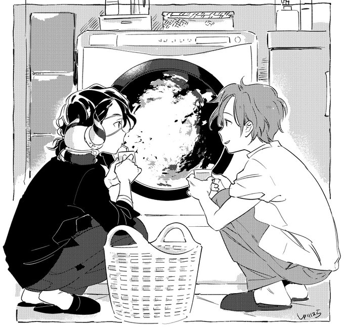 神谷とアスランとサタン。お洗濯団欒。 #akiesm