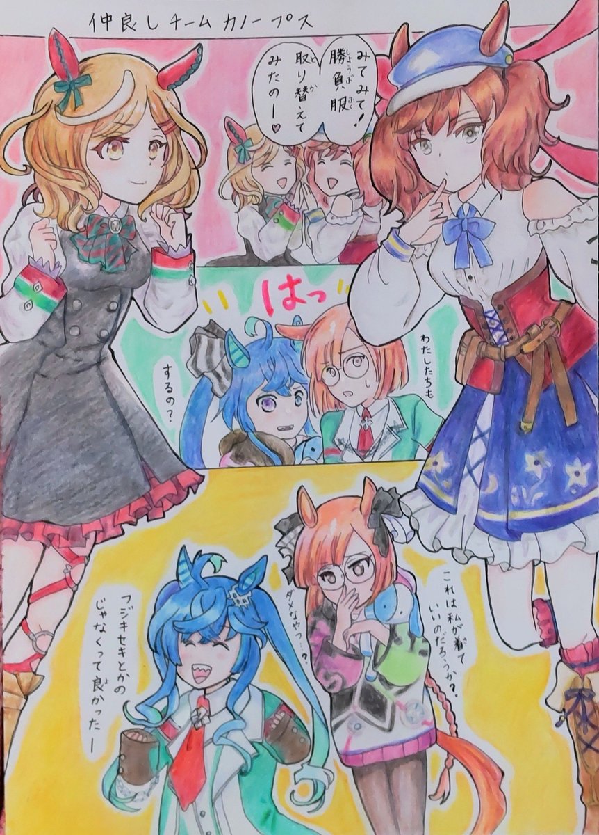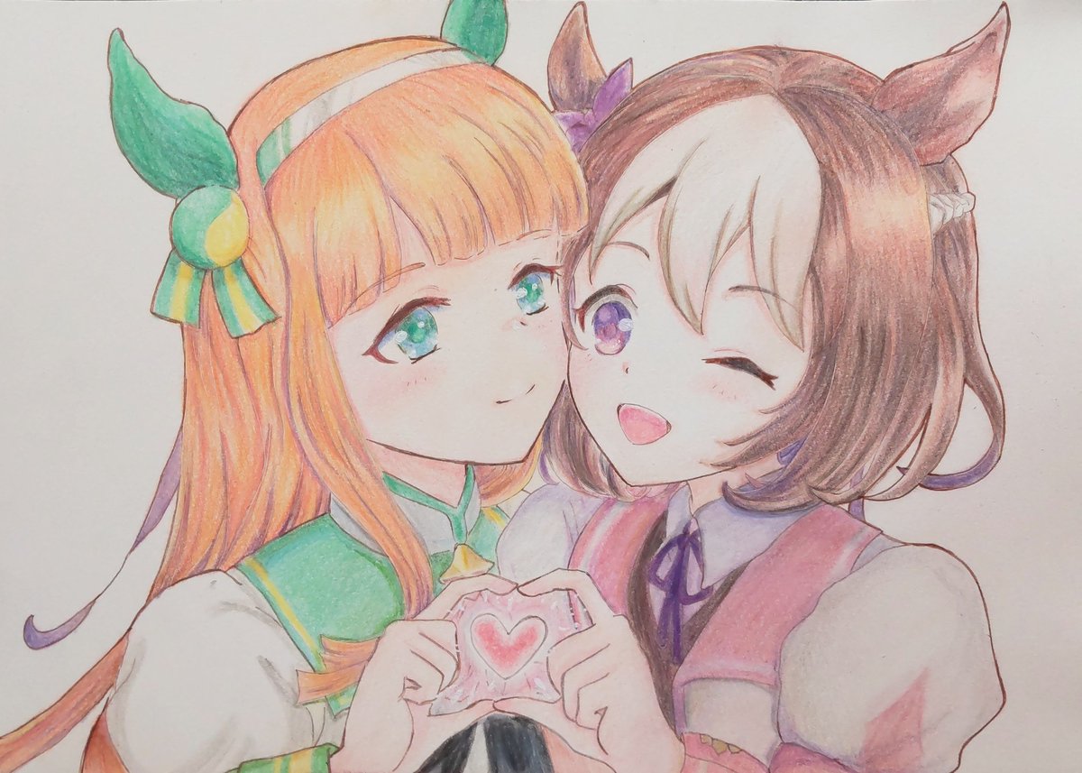 「お母ちゃんお友達ができました!!」 なお、すぺちゃんもスズカちゃんもうちのチームにはきてくれてません( ;∀;) #ウマ娘 #スペシャルウィーク #サイレンススズカ #色鉛筆画 #ウォーターフォード #ウマ娘好きと繋がりたい #イラスト好きな人と繋がりたい