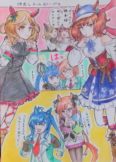 「仲良しチームカノープス」 着せ替えしたかっただけなんです。オチはありません🙇 #ウマ娘 #ウマ娘プリティーダービー #マチカネタンホイザ #ナイスネイチャ #ツインターボ #イクノディクタス #色鉛筆画 #ケント紙 #ウマ娘好きと繋がりたい