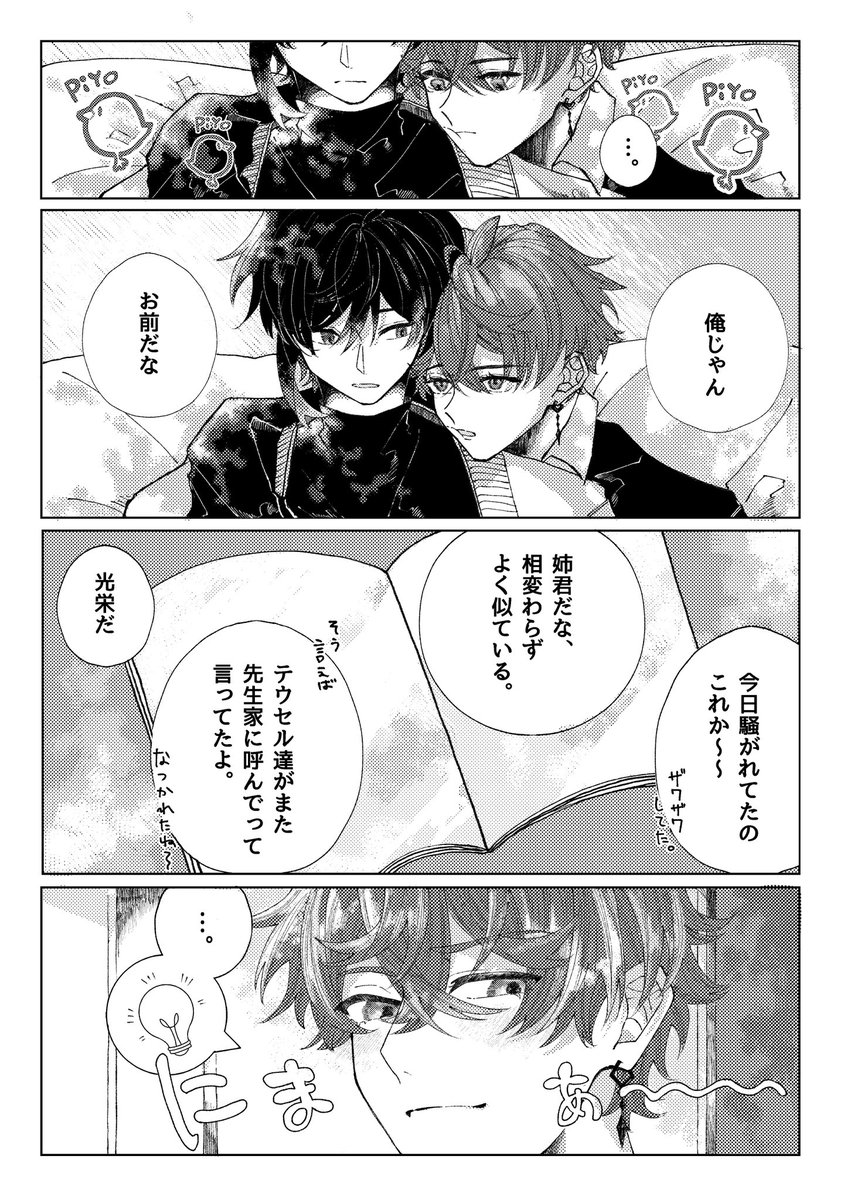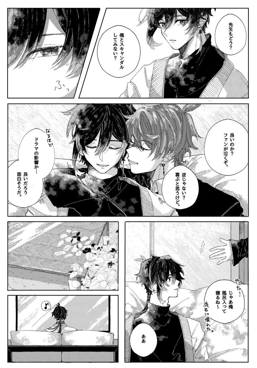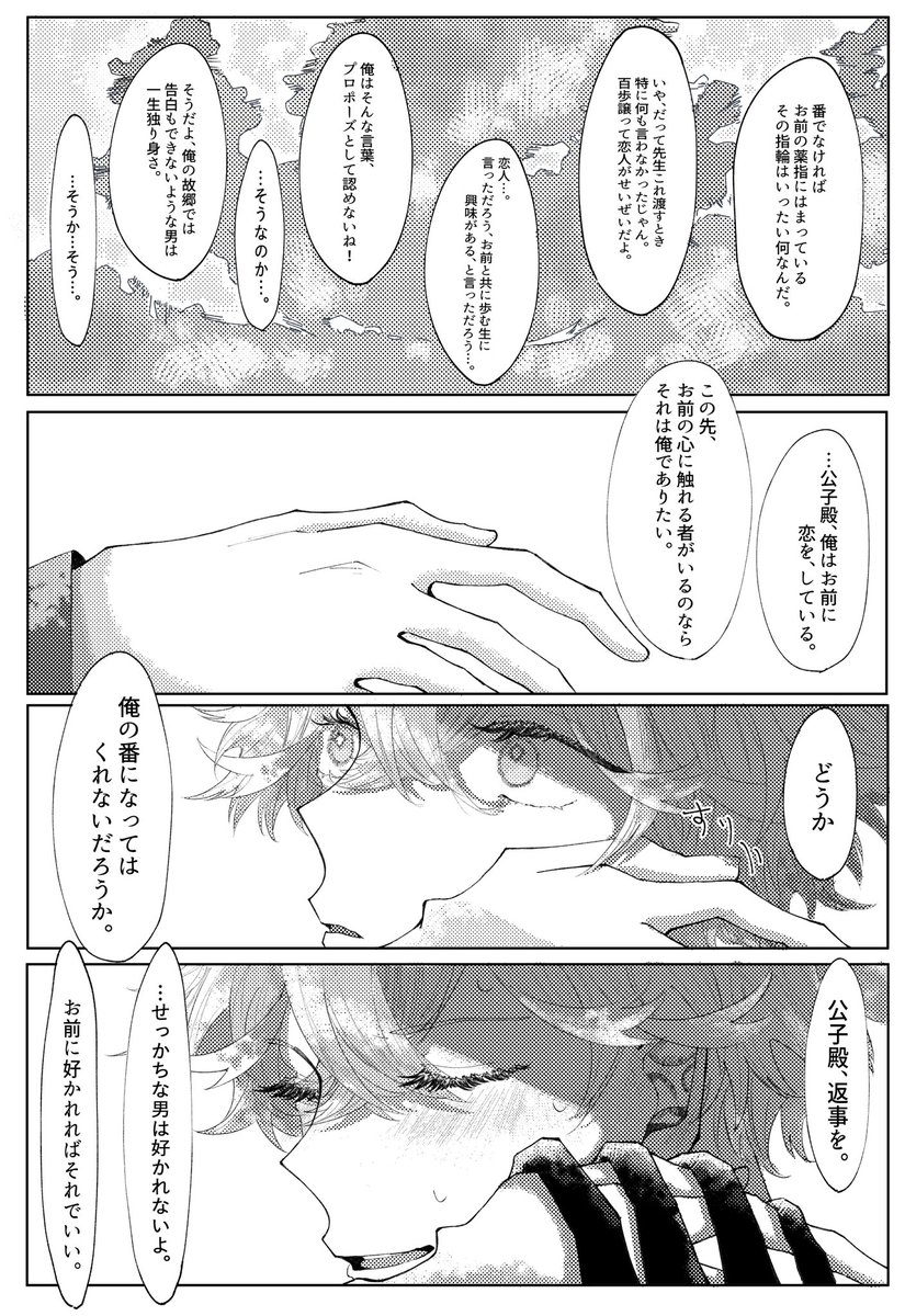 タルをモラ久だと勘違いして挨拶に来るナヒーダと、公開告白をする先生と、生まれて初めて先生からダイレクトアタックされて照れるタルの話 前に描いた眷属話と繋がってる(時系列的には前の話のその後) 4/10 #鍾タル #ZhongChili