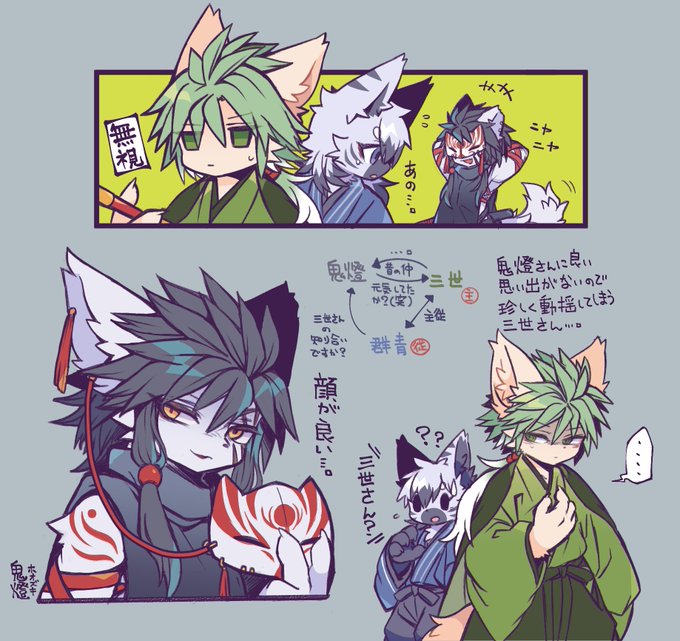 10 49 ポイピクの方ログ表示されないのでこちらに落書き再掲させていただきます…。篝さん周りと狩衣鬼燈さん 23/03/10 19:51