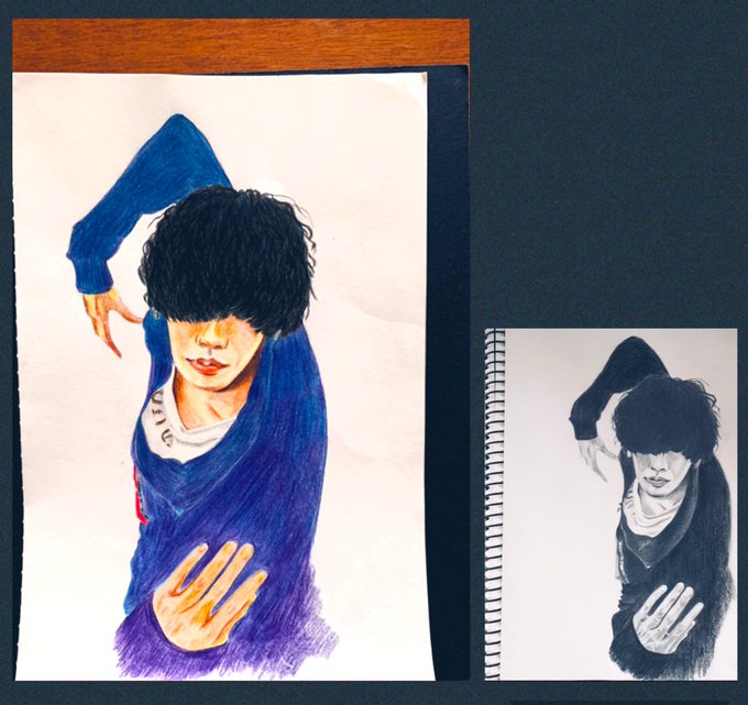 3 48 この前描いた鉛筆画を使って、色鉛筆画に初挑戦( ง ¯ᒡ̱¯ )و✧ このポーズの米津さん、好きなんです。 #米津玄師 #色鉛筆画 #鉛筆画 #色が混ざらない恐怖 #色鉛筆はなかなか消しゴムじゃ消えない恐怖 #服の色アレンジしたらアムロ感 20/04/12 10:12