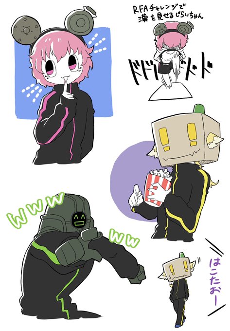 FA練習その2✍️ 今回は🤖さん📦さん🐻ちゃん RFAネタが多くなったけど私が🐟沼ったって気づいた頃の一大イベントだったから思い入れがあるんよなー #bintrollFA #じらいちゃんです