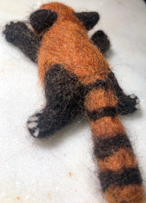 手長いなぁ。身体めっちゃ難しい😭。 本日の習作。 顔はそこそこ可愛く出来たんやけどなぁ。 #羊毛フェルト #レッサーパンダ
