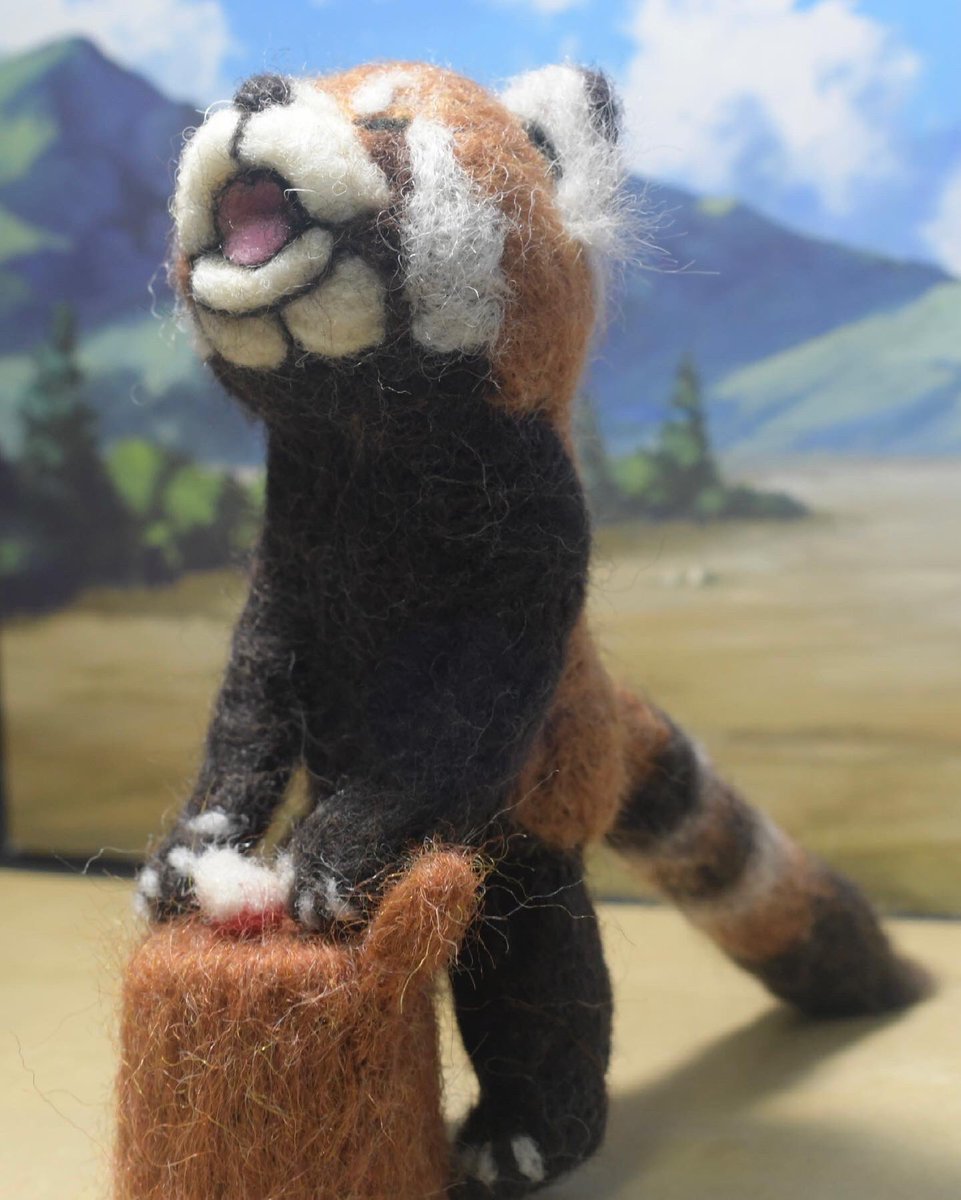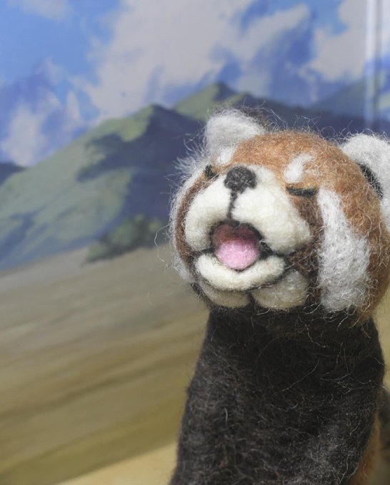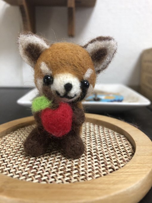 うま〜。 って言ってるウーロン。 #レッサーパンダ #羊毛フェルト #人形 #初心者