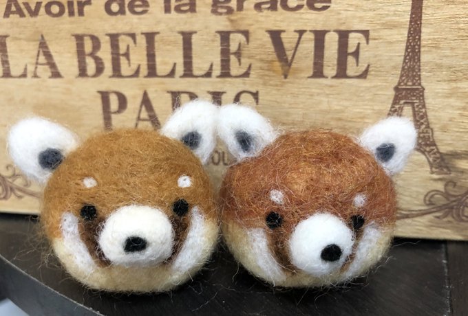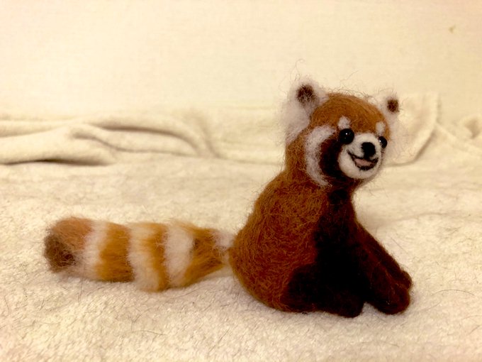 0 4 右の子は面長と旦那に散々笑われた😭 左の子は今できた。 #羊毛フェルト #レッサーパンダ もっと頑張る。 21/03/05 15:09