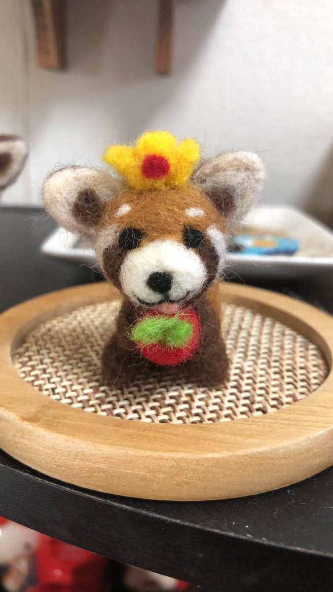 0 6 今日の作品。 所要時間6時間ぐらい? 王冠載せて、ストラップにしてみた❤️なので明日から落とさないような場所でお供にしまーす♪ 胴をも少しちっちゃくすればよかったかな? なんか1日1パン化してるけど💦そんなノルマはない。 ただ早く上達したいよぉ〜ってだけ。 #羊毛フェルト #レッサーパンダ 21/02/20 01:30