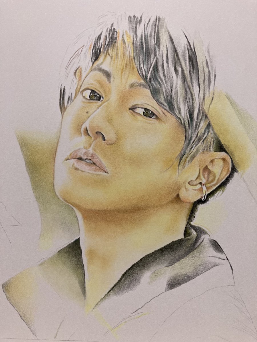 0 59 描きかけの色鉛筆画が出てきた… けど、ボックスにしまった😂ww 描き終わらんな、コレ…チーン #佐藤健 #色鉛筆画 22/05/14 14:11