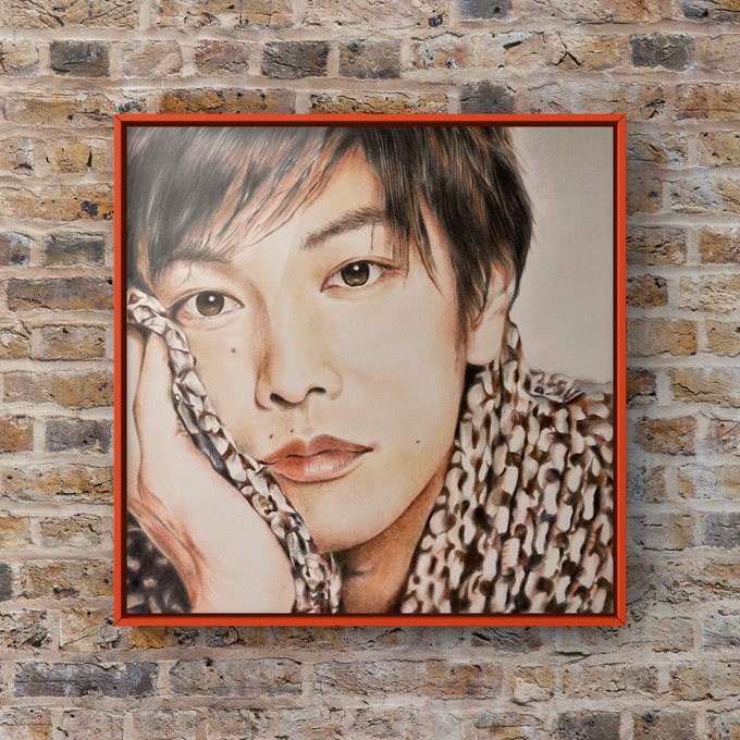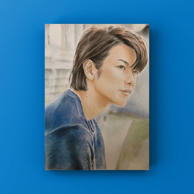 暑い中通勤の皆さまご苦労様です。 こんなに暑いのに、見るからに暑そうな色鉛筆画を上げてすいません… 「本日の額装」 #佐藤健 #色鉛筆画
