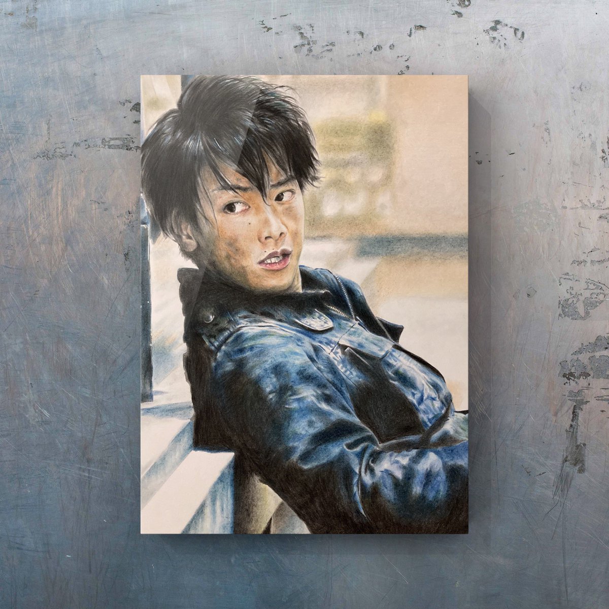 「本日の額装」 永井圭のつもりで一日闘うわ… 雨だし。 #佐藤健 #色鉛筆画