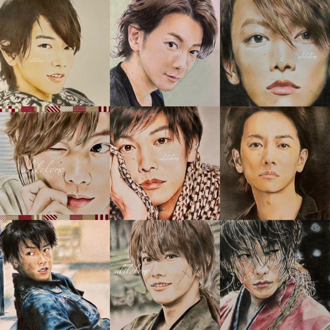 7 198 描いた順番にレイアウトしてみた❣️シリーズ、色鉛筆画の10〜18枚目。 色鉛筆画は鉛筆画の3倍は時間がかかります。ワタシの持ってる色鉛筆は色数も少ないので、紙の上で色を作っていく作業はとても大変ですが、楽しい😊 いつも皆さんのコメントに背中を押されています❣️ #佐藤健 #色鉛筆画 22/03/19 09:31