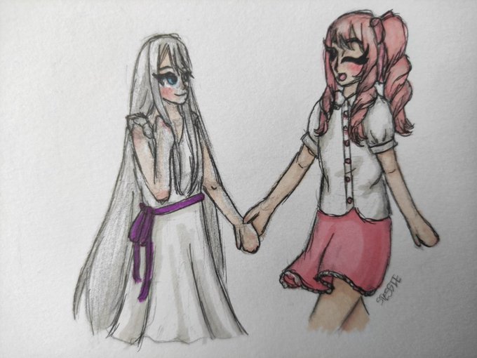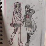 I can' t help but brainrotting about Kanade and Taranza, I had to draw them again... Not only that I like to think they would kin each other because they have many things similar in their lore, but I' m also sure they would be besties c: #宵崎奏#Taranza#prsk_fa#Kirby