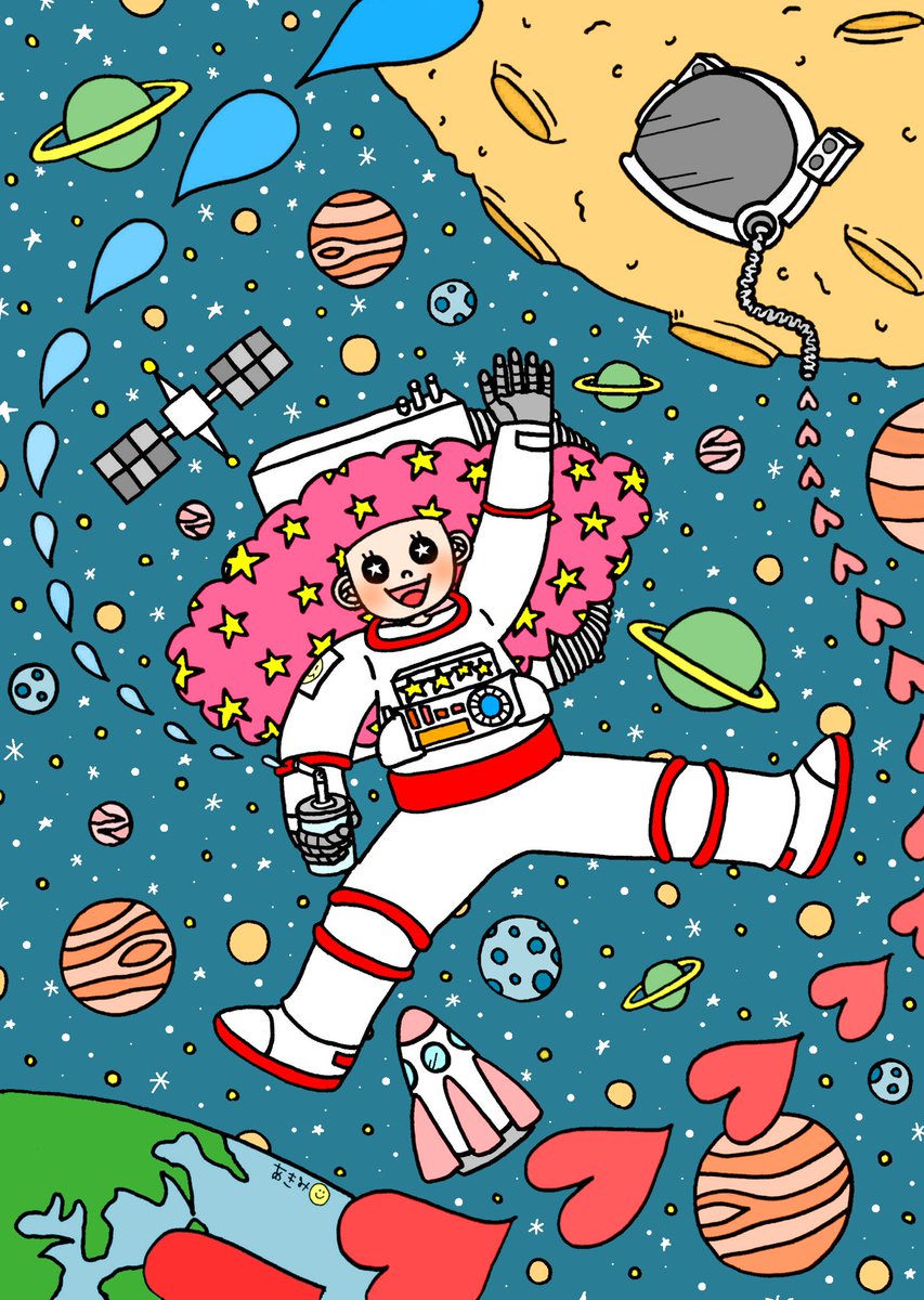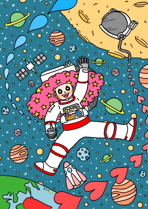 「ハロー、宇宙」 かなり昔の絵だけど、自分でも好きな絵 #イラスト #イラスト好きな人と繋がりたい #イラストレーター #イラストレーターさんと繋がりたい #宇宙 #宇宙飛行士 #過去絵 #illustration