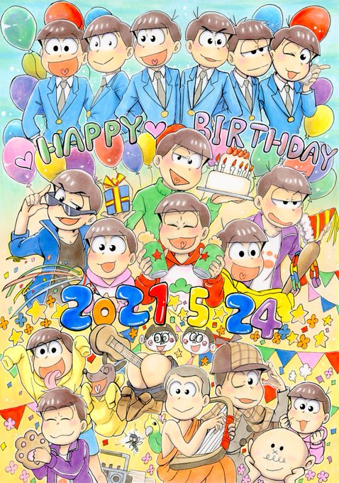 138 462 #松野家6つ子生誕祭お祝いイラスト #松野家6つ子生誕祭2021 少し早めのお祝い㊗️🎁🎂 お誕生日おめでとう!!🎊 1期~3期までの6つ子ちゃん達✨ みんな大好きです!! 21/05/23 15:17