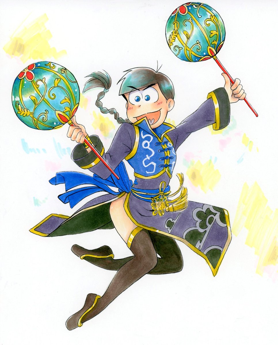 ※公式にないものを持たせています 完全に趣味なんですが… 一回描いてみたかったチャイナ的な武器(のようなもの)双錘というらしいですね🤔お湯を被ると変身する有名な漫画のネコの子が持ってた武器を参考に(すいません)